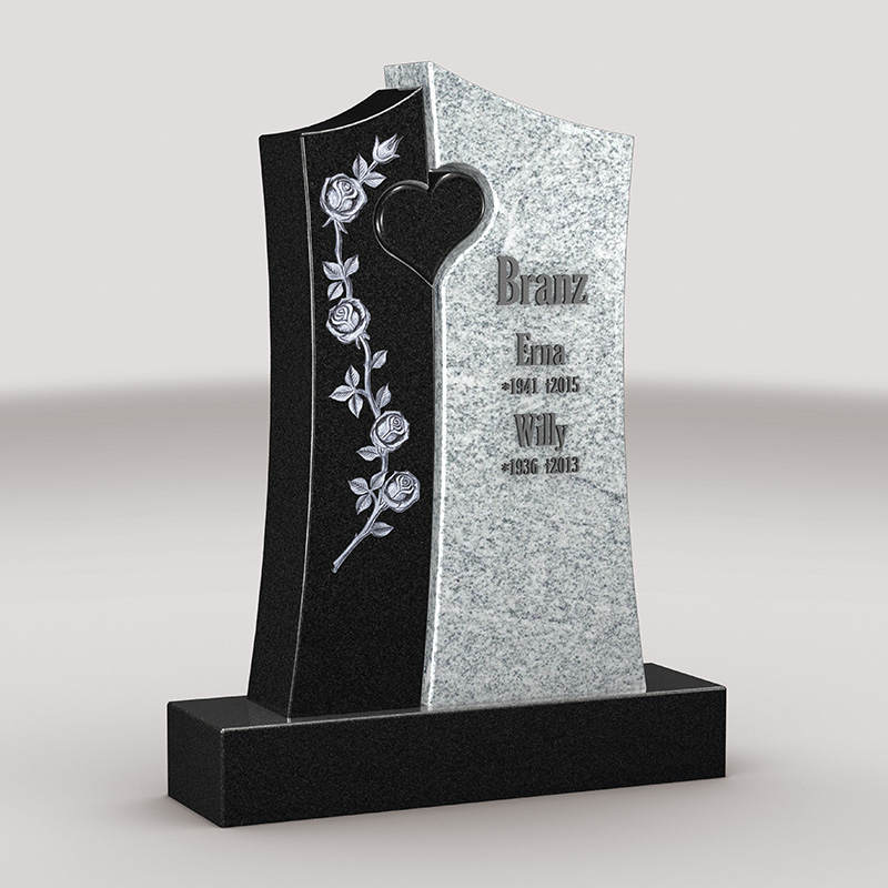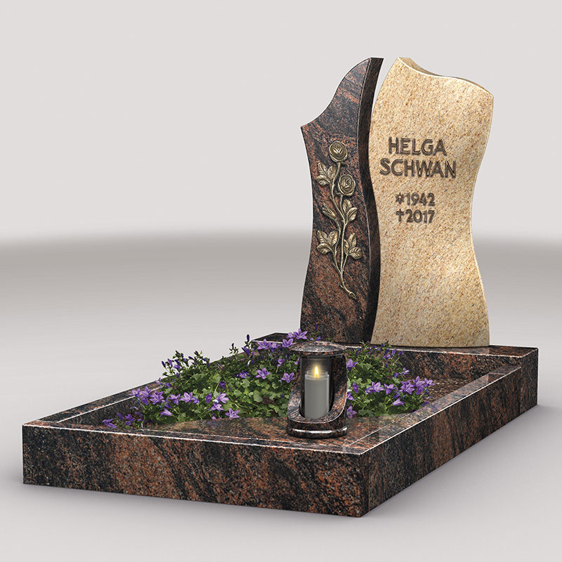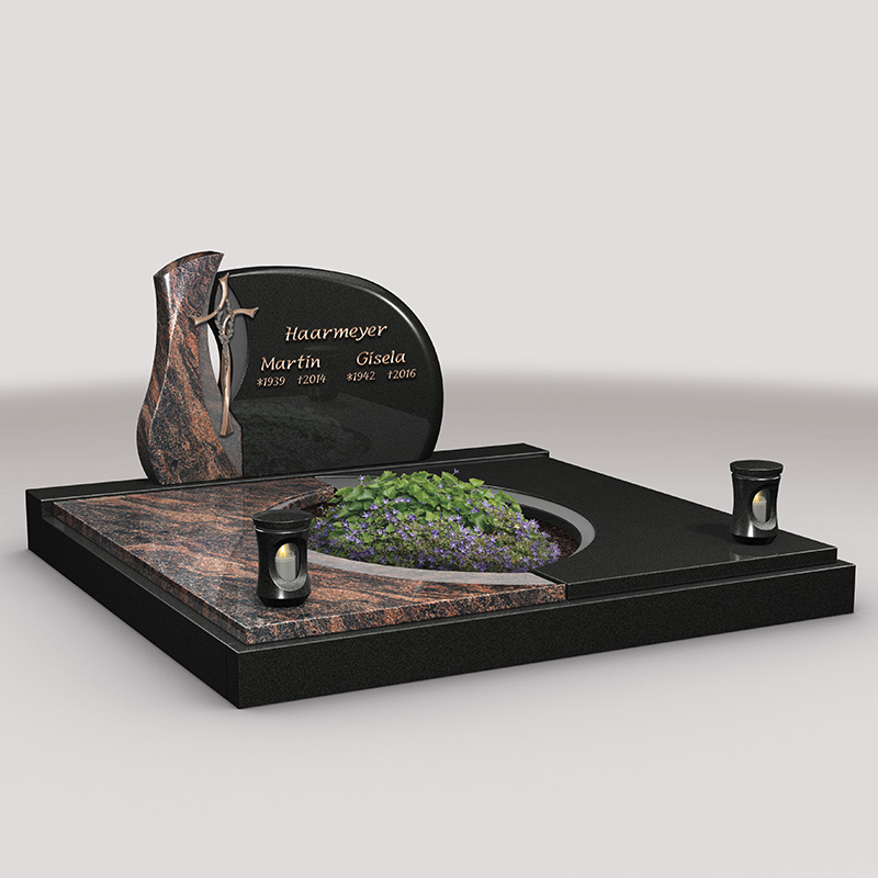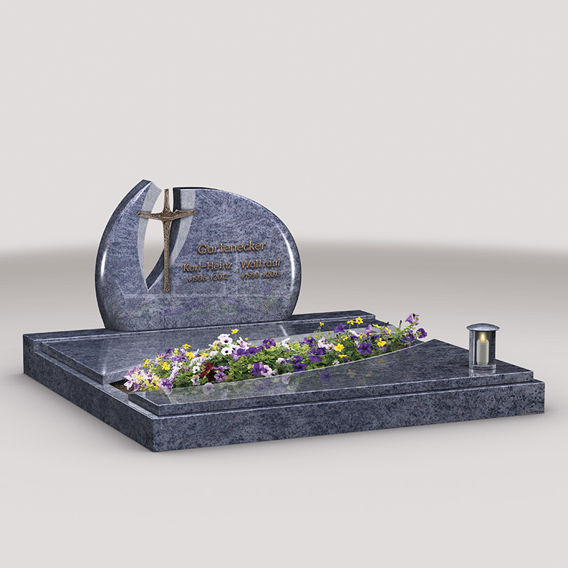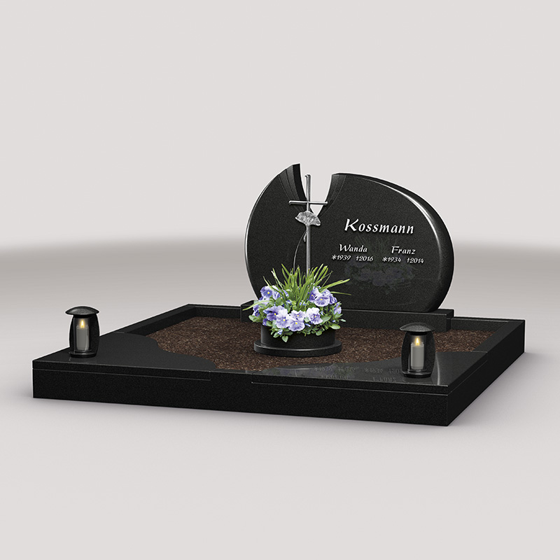 In einem Doppelgrab werden Eheleute oder Lebenspartner direkt nebeneinander beigesetzt. Auf dem Grabmal für ein Doppelgrab ist genügend Platz vorhanden für Vornamen und Nachnamen sowie Geburts- und Sterbedaten beider Menschen. Auf Wunsch ergänzen wir auch einen Leitspruch, der an die Verstorbenen erinnert.